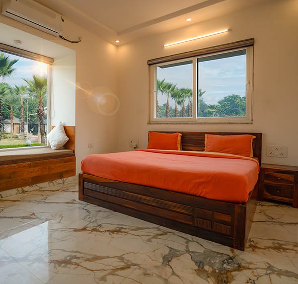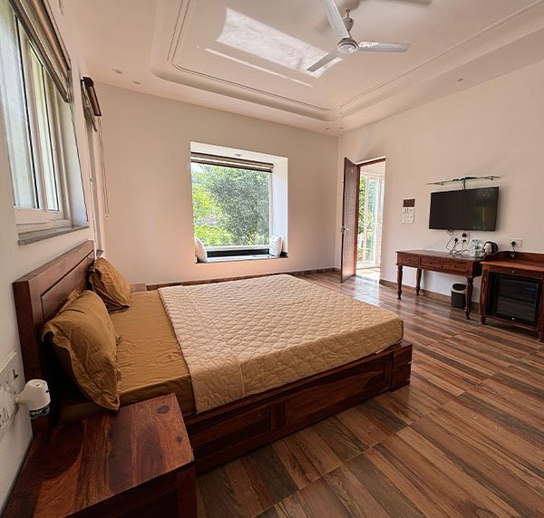 Our Resort offers two double storey Villa stay near Delhi NCR with a total of 12 rooms. The Villa Stay near Noida at Rurban Resort is filled with comfort, exotic in appearance and rustic in their feel. Villas at Rurban Resort are perfect for families. They offer you a relaxing stay and expansive view of the 17 acres of nature retreat, one of the best places to visit near Delhi NCR.