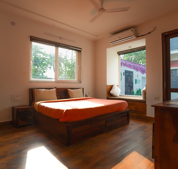 Our Resort offers two double storey Villa stay near Delhi NCR with a total of 12 rooms. The Villa Stay near Noida at Rurban Resort is filled with comfort, exotic in appearance and rustic in their feel. Villas at Rurban Resort are perfect for families. They offer you a relaxing stay and expansive view of the 17 acres of nature retreat, one of the best places to visit near Delhi NCR.